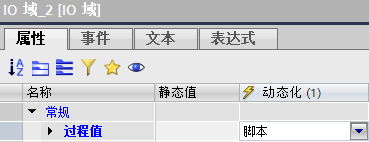 在画面中组态“IO域”元素,在其“动态化“属性中选择脚本。