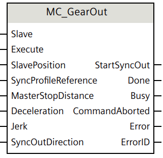 如果同步处于待处理状态 ( 即同步指令 MC_GearIn 状态“Busy”=TRUE、“StartSync”=FALSE、“InSync”=FALSE ) 时,需要用使用“MC_Stop”来超驰同步指令。
