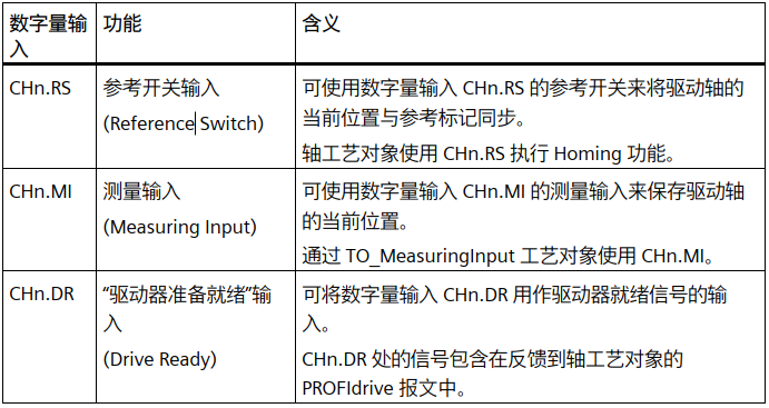 每个通道有三个数字量输入,数字量输入可用作相应驱动器控制的附加功能参见表2-1。