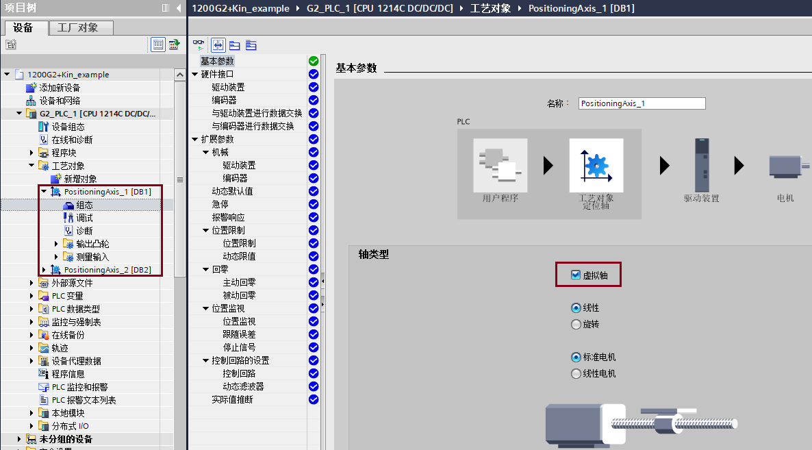 (3)双击“运动机构工艺对象”下的“组态”,设置运动机构类型。