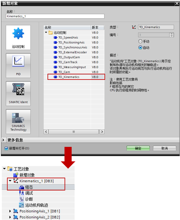 (2)双击“新增对象”,创建运动机构工艺对象。