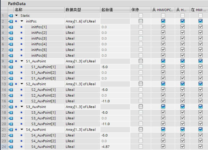 (3)创建 DB 数据块,预设路径曲线中需要的各位置坐标数据。