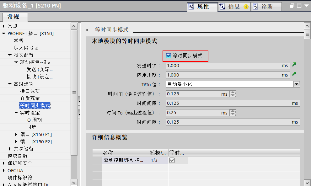(4)点击 S210,进入设备视图,开始设置PROFINET接口 [X150] 的相关参数