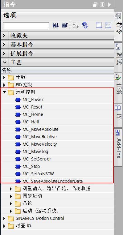 (1)打开主程序块 OB1,使用右侧指令列表中的运动控制指令进行编程,如图3.1所示。