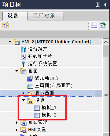 然而,在 Unified Panel中,“画面”功能中并未提供“模板”选项,需借助“画面窗口”控件结合普通画面来实现类似功能。