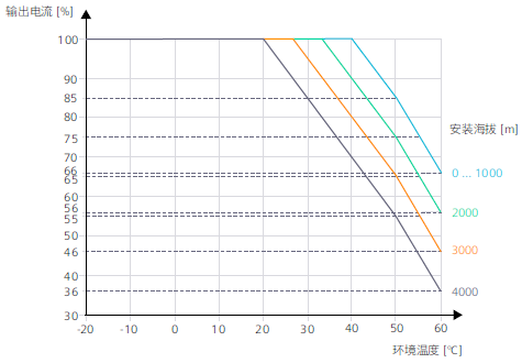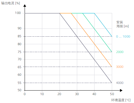 2、G120XA允许的输出电流与安装海拔高度、环境温度之间的函数关系