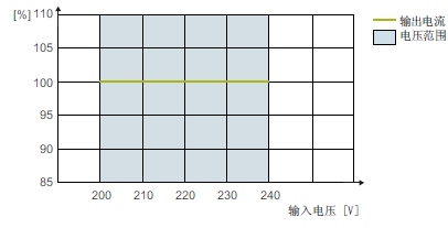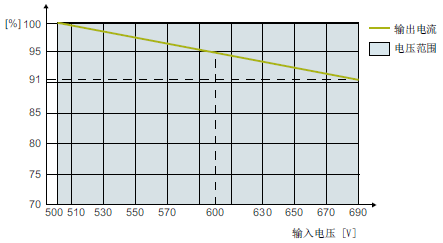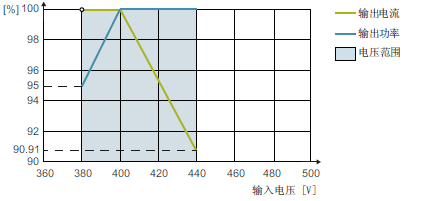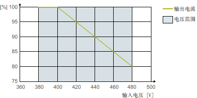 380 V 时该脉冲频率的降容电流 [A] = 380 V 时的额定输出电流 [A] * 400 V 时该脉冲频率的降容电流 [A] / 400 V 时默认脉冲频率下的输出电流 [A]