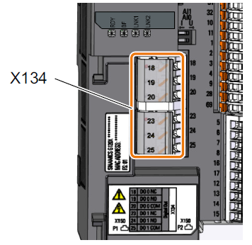 2. 将用于 STO 反馈的电缆连接到端子模块 X134 的 2 个数字量输出上。