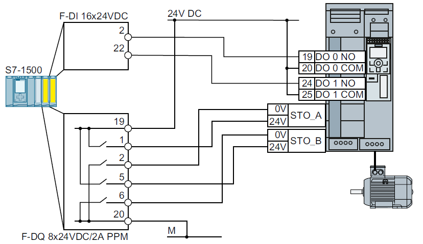 如果选择安全功能STO,需要一个上级控制器。以SINAMIC I/O模块为例