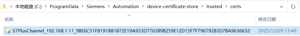 手动把图27中的证书剪切到“C:\ProgramData\Siemens\Automation\device-certificate-store\trusted\certs”文件夹下,如图28所示: