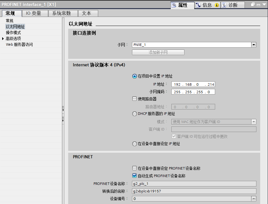 由于勾选了“自动生成 PROFINET 设备名称”,可见 TIA 软件自动的将上述更改的“名称”信息用于“PROFINET 设备名称”。