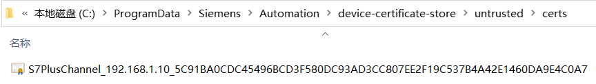 此时,打开路径“C:\ProgramData\Siemens\Automation\device-certificate-store\untrusted\certs”,可以看到有未被信任的证书产生,如图17所示: