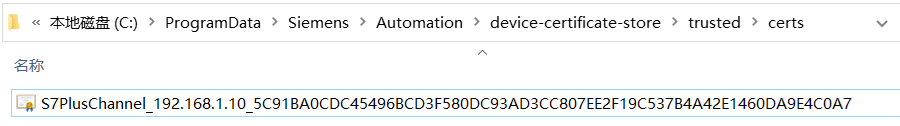 手动把图27中的证书剪切到“C:\ProgramData\Siemens\Automation\device-certificate-store\trusted\certs”文件夹下,如图18所示: