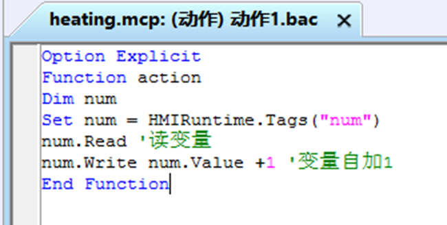 如果使用C动作来每秒为变量“num”自加1,可以使用下面的C脚本。其触发器的设置与VBS相同。
