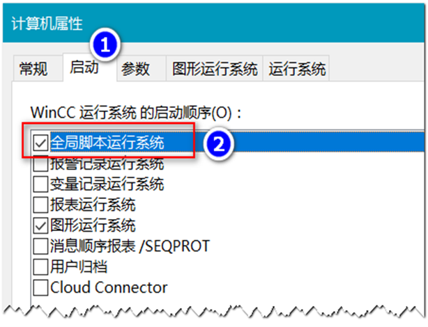 这样周期执行的脚本就组态完成。在运行WinCC项目之前还需要启动“全局脚本运行系统”。打开WinCC的计算机属性,切换到“启动”栏,选择“全局脚本运行系统”。
