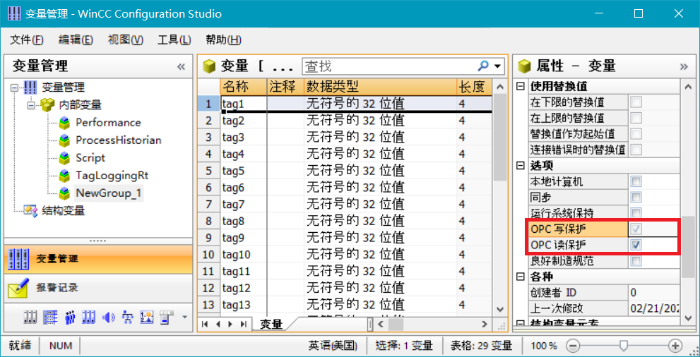 变量的OPC读写保护