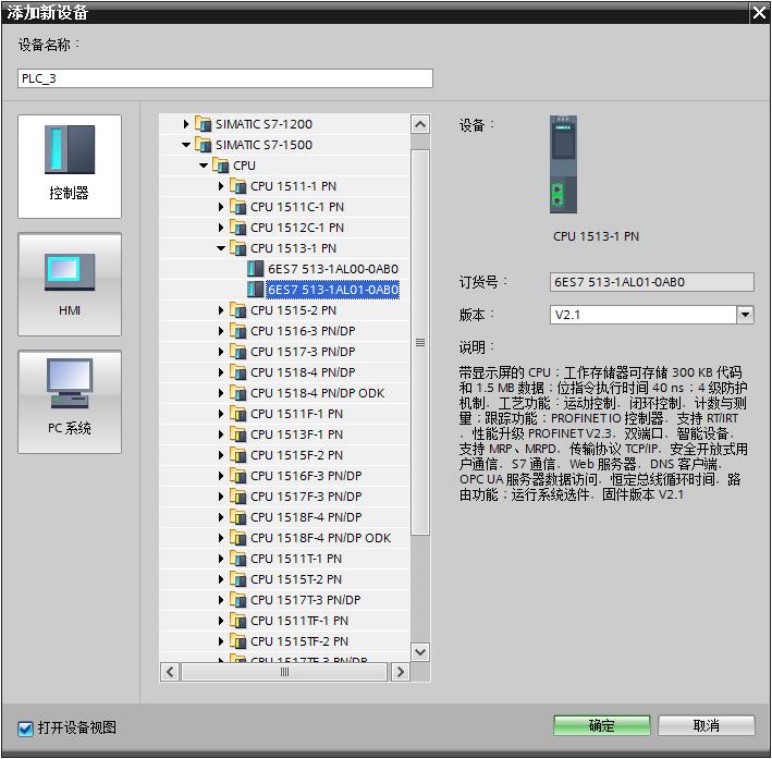 在设备视图中显示出 S7-1500 的组态画面,如图2所示。