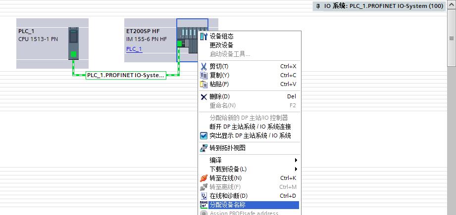 右键点击PROFINET 网络给IM155-6PN HF分配设备名称,如图10所示。