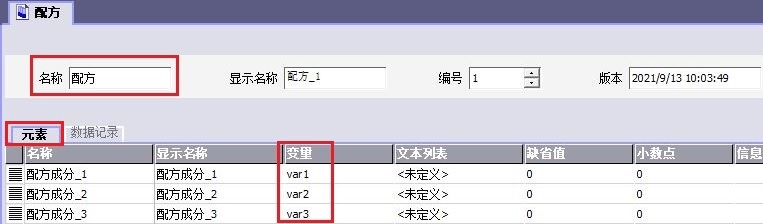- 在PLC侧修改元素值,修改后点击“来自PLC”按钮上传配方数据记录。