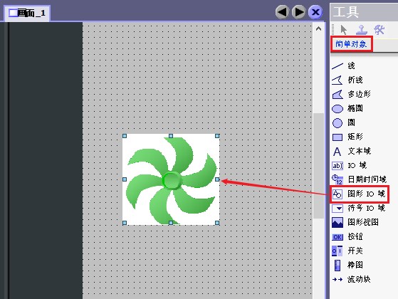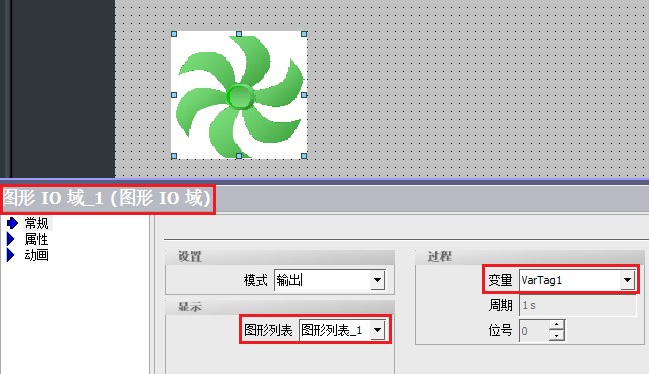 步骤3. 在画面中通过拖拽的方式添加图形IO域,关联创建的图形列表和变量。