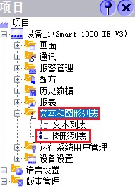 步骤1. 在左边项目树中找到“文本和图形列表”,双击打开“图形列表”编辑器。如下图所示。