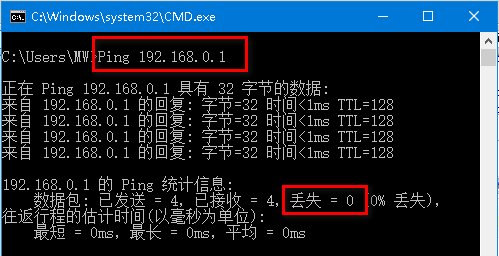 在弹出的DOS 窗口中输入: Ping 空格 PLC IP 地址后回车。在下方的统计信息中看到“丢失”为0时则说明该计算机与 PLC物理链路连接正常。(如丢失值不为0,应检查计算机的 IP 地址与PLC是否设置在同一网段(如192.168.0.1与192.168.0.2 这种前三位相同最后一位不同的形式称为同一网段),物理链路(网线,网卡等)是否正常)。