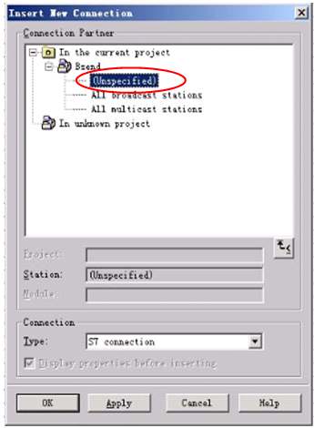 在点击菜单第一项“Insert New Connection”, 在弹出的对话框中点选 “(Unspecified)”