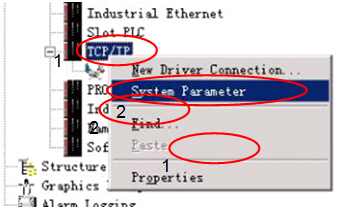 设置WinCC逻辑设备名:右键单击TCP/IP,点击系统参数项