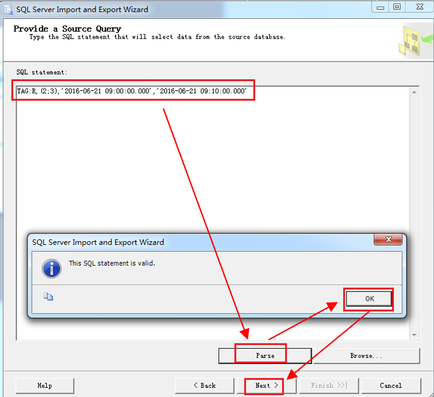 如图3-11所示,点击Parse检查语法无误,点击下一步。