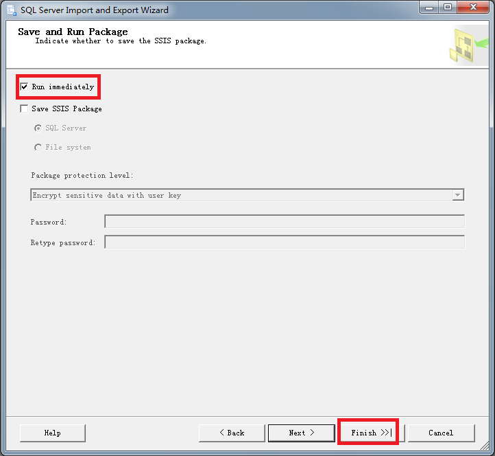 6.生成导出文件。勾选Run immediately,点击Finish完成设置,如图3-13所示,;随后将完成数据导出,出现如图3-14的结果则表示数据导出正常,并得到导出的CSV文件,然后再参照附录1进行数据分列就可清楚地观察归档数据了。