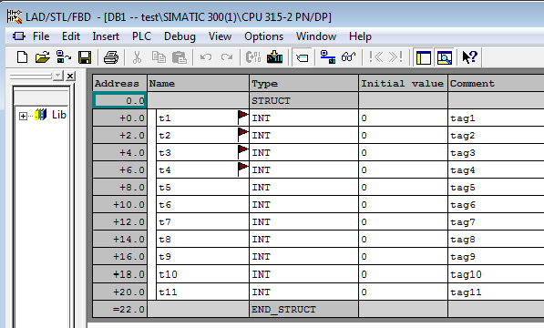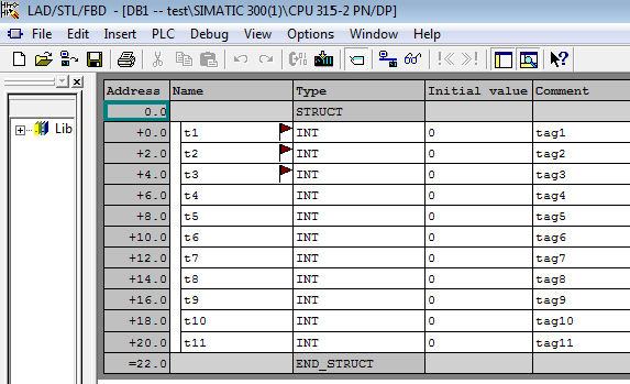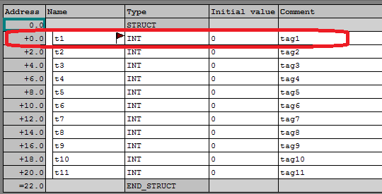 在Step7中打开DB块,t4变量也已经被标上小旗。