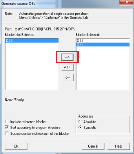 选择需要的DB块(可以选择多个),并移到右侧窗口中。