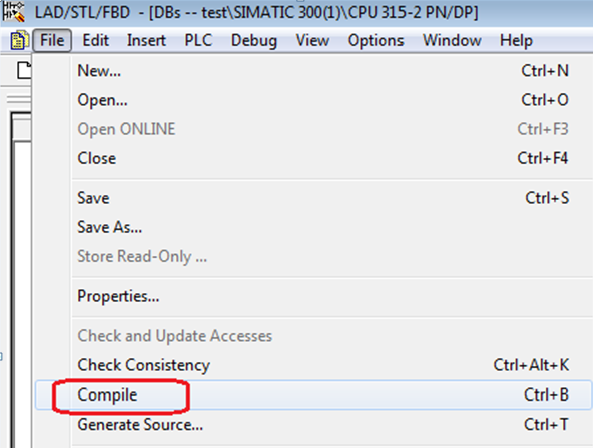 然后在源文件编辑器中选择“File”->“Compile”,会重新生成或更新DB块。
