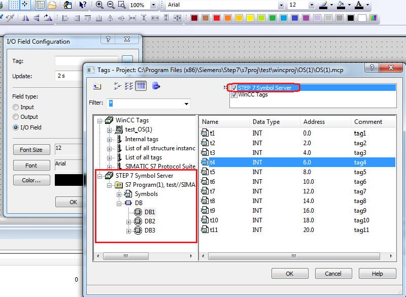 也可以直接从WinCC项目中选择Step7变量,例如为IO域选择变量时,在选择变量对话框中选中“STEP7 Symbol Server”,然后就可以选择Step7中的变量了。