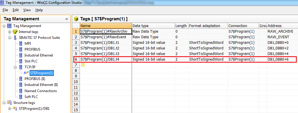 编译完成,打开WinCC项目,可以看到在“TCP/IP”下自动创建了连接和变量。