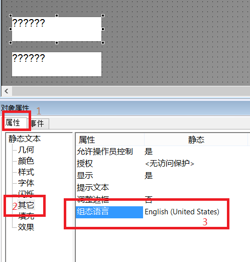 如果是项目运行时对象文本显示问号或者乱码,除了确认组态语言,还需要检查项目运行语言是否与组态语言一致。