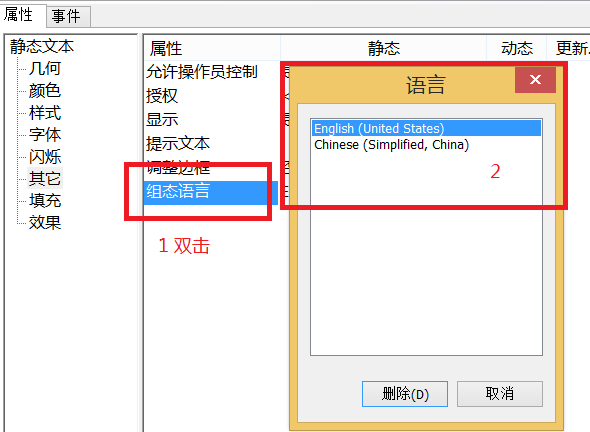 双击“组态语言”,在弹出的列表中可以查看此对象有哪些组态语言。请确认之前的组态语言和现在的组态语言是否一致。