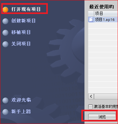 1.在V16 软件打开现有项目,通过“浏览”找到V13 SP1 的旧项目。