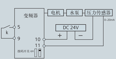 PID控制功能在恒压供水中的应用,由系统内置电位器作为压力给定,模拟量通道1接入压力反馈信号,具体参数如下: