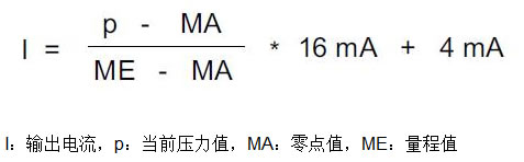 检查零点M5和量程M6,根据以下公式计算出当前显示压力值所对应的电流值: