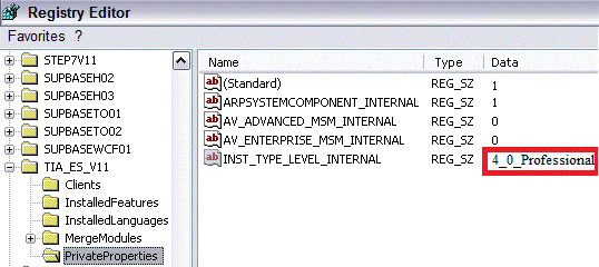 HKEY_LOCAL_MACHINE\SOFTWARE\Siemens\Automation\_InstalledSW\TIAP11\TIA_ES_V11\PrivateProperties\INST_TYPE_LEVEL_INTERNAL
