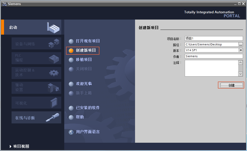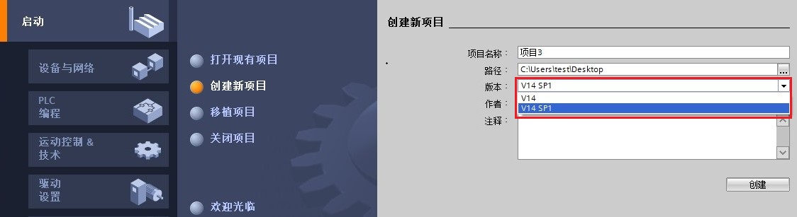 使用 STEP 7 V14 SP1 软件能在创建新项目时选择项目版本为 V14 或者 V14 SP1,如图 8 所示。