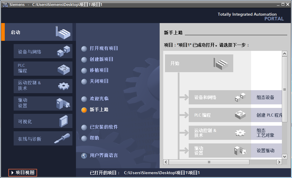 启动软件,软件界面包括 Portal 视图和项目视图,两个界面中都可以新建项目。