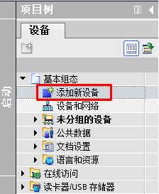1、添加 PLCS7-1200 自动化系统需要对各硬件进行组态、参数配置和通信互连。项目中的组态要与实际系统一致,系统启动时 CPU 会自动监测软件的预设组态与系统的实际组态是否一致,如果不一致会报错,此时 CPU 能否启动取决于启动设置。