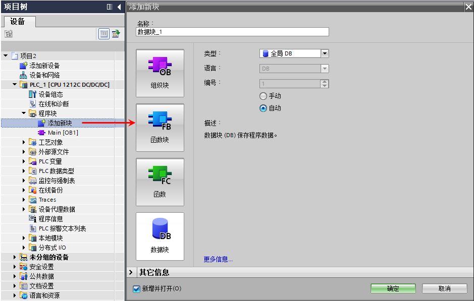 设备配置完成后,用户可继续根据自动化任务设计用户程序。用户可以在 CPU 中添加: