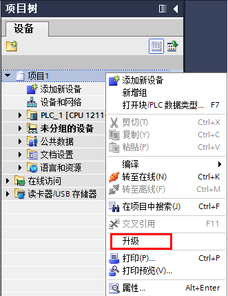 在 TIA Portal V14SP1 软件中,打开 TIA Portal V14 的项目,是兼容打开项目。同理,TIA Portal V14 SP1 软件打开的是 使用 TIA Portal V14 SP1软件但创建项目版本是 TIA Portal V14 的项目 (创建方法参考:TIA Portal V14 SP1 项目创建)。