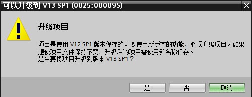 在 TIA Portal V13SP1/V13SP2 软件中,打开 TIA Portal V13 或 V12SP1 的项目时,会弹出以下对话框。