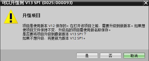 在 TIA Portal V13SP1/V13SP2 软件中,打开 TIA Portal V12 的项目时,会弹出以下对话框。