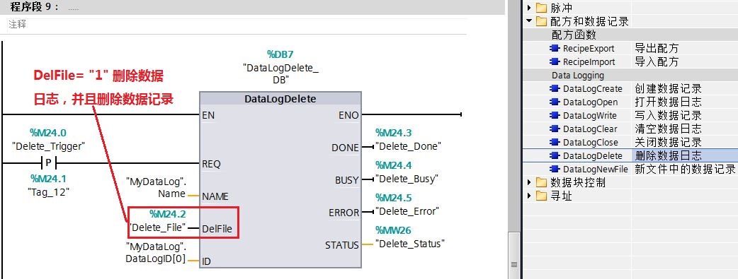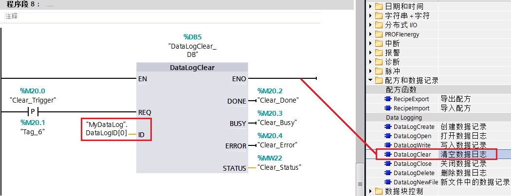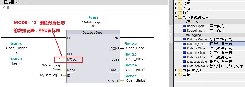 S7-1200 PLC执行RUN-STOP切换或PLC循环上电后会自动关闭数据日志文件。此外,执行“DataLogClose”指令可关闭已经打开的数据日志文件。