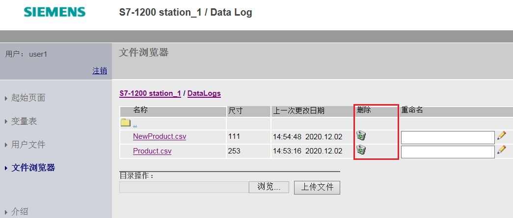 1.登录 PLC内置 Web 服务器,直接删除数据日志文件。如下图3所示: